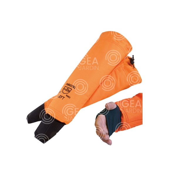 | Otras características | Cumple Normativa EN-381-5:1995. Brazalete poda. 8 capas de protección. Puño negro de borde acanalado. Elásticos de ajuste detrás del codo. Con cordón retenedor. |